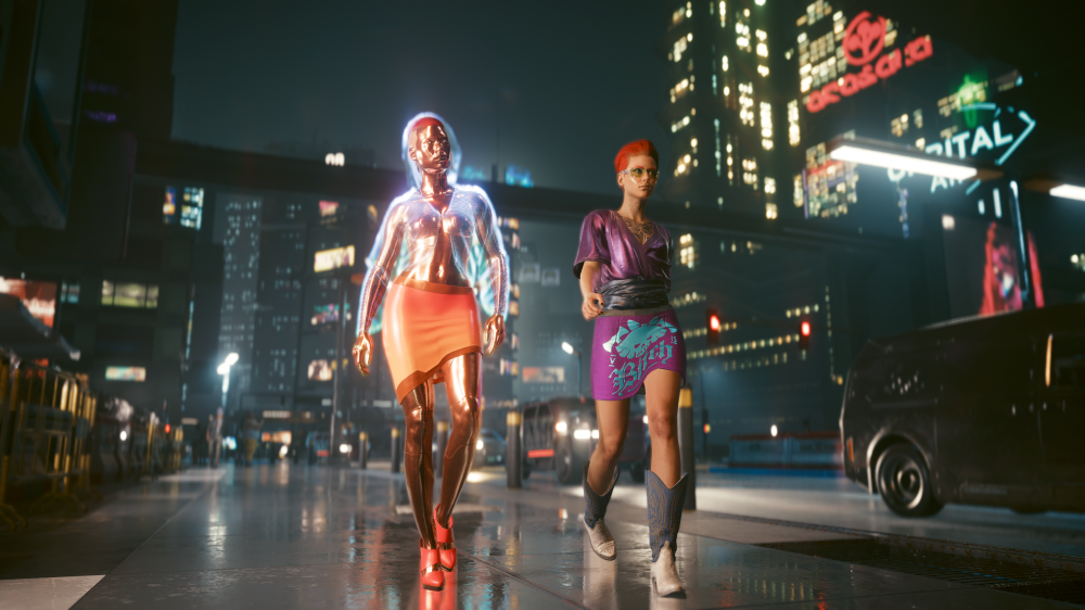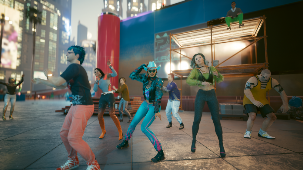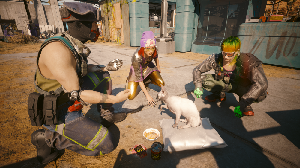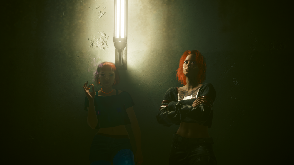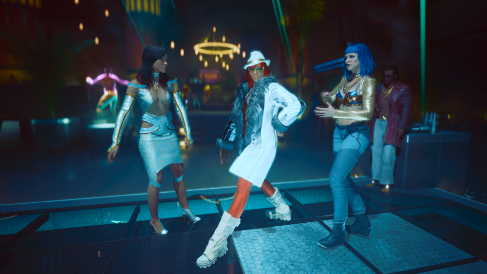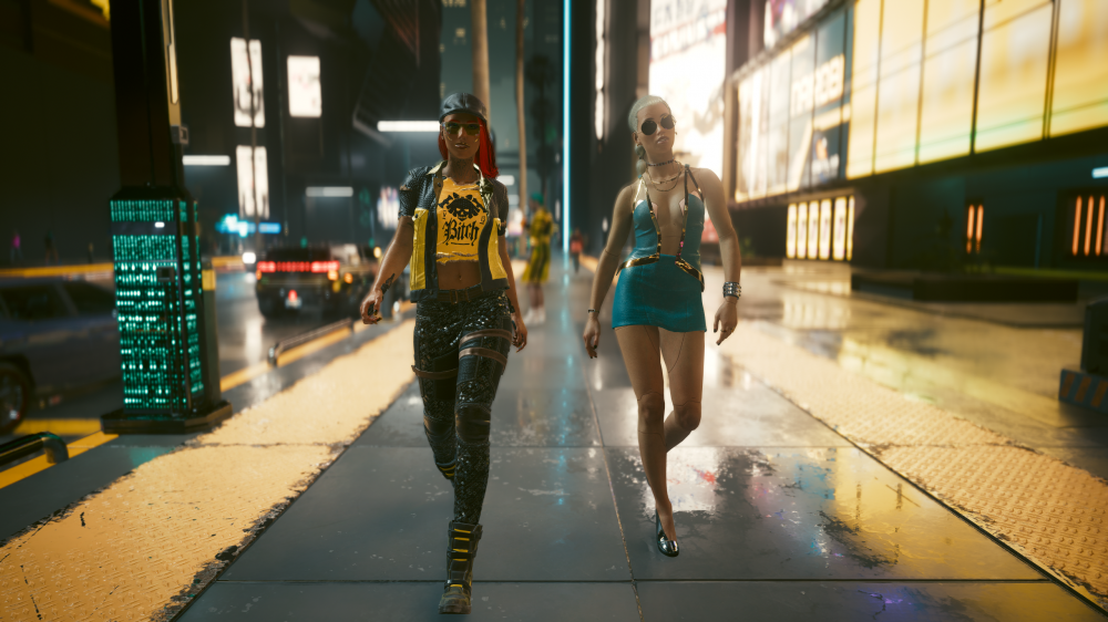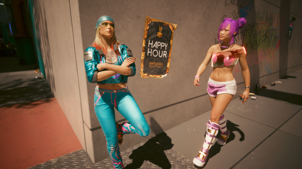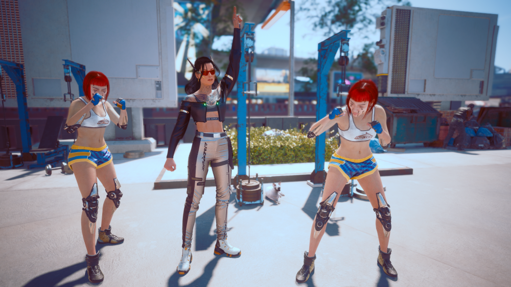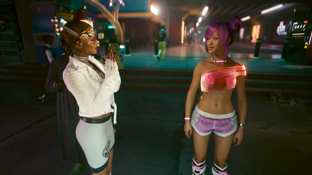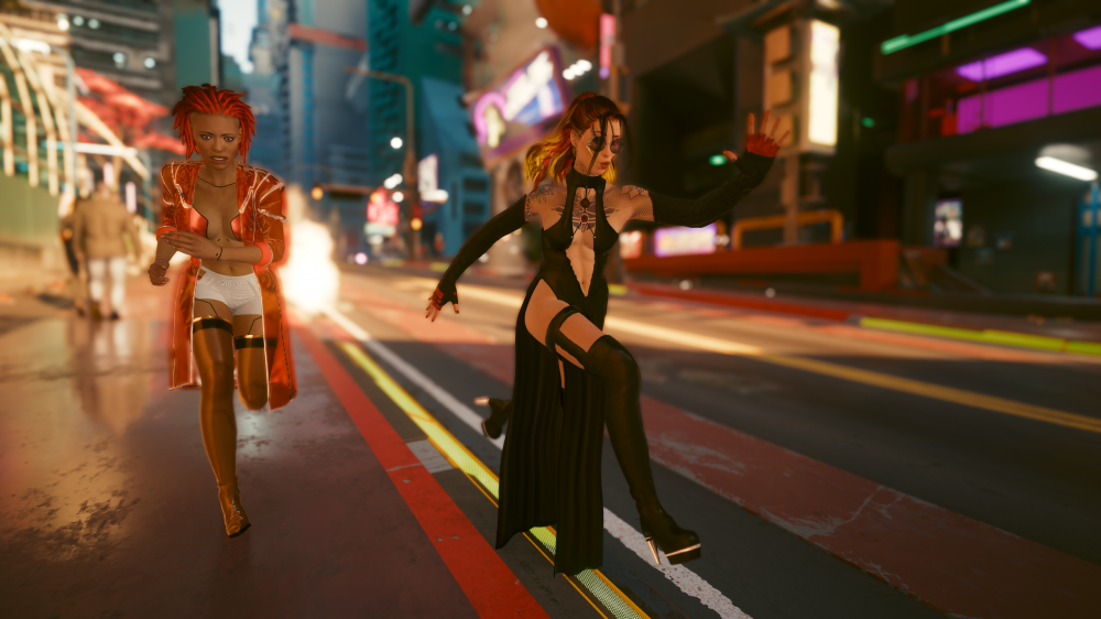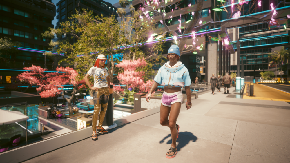 These three I usually only met walking around solo. They were standing there together all businesslike, ready to tackle anything that came at them. Expecting trouble, from the looks of it. Maybe even welcoming it? It is Night City, after all.