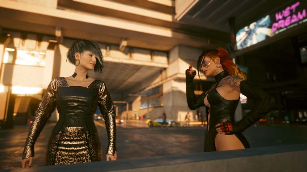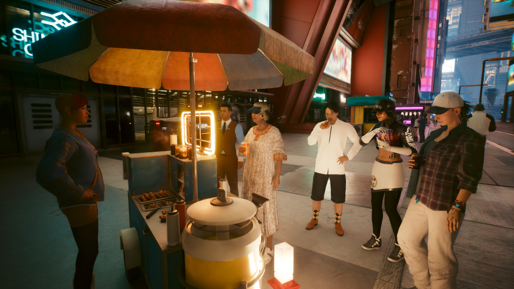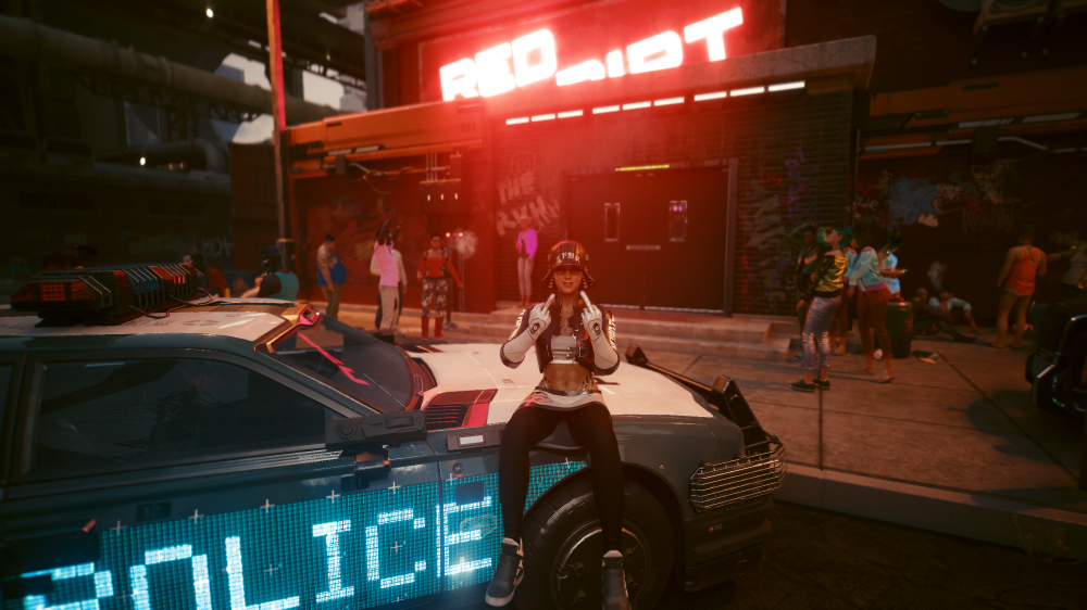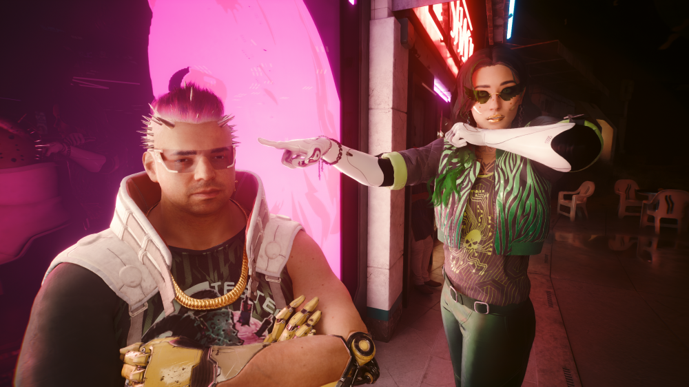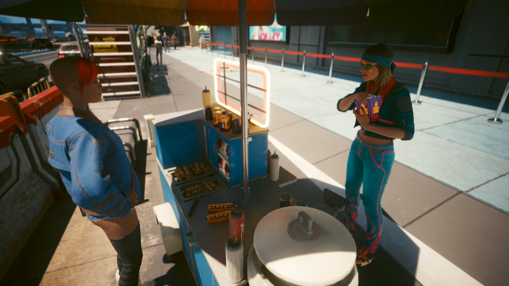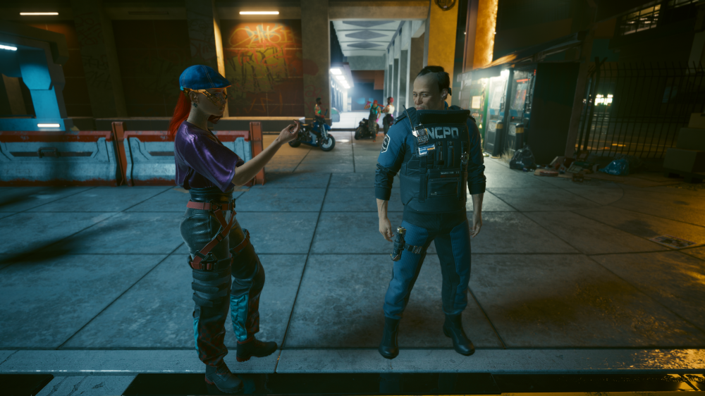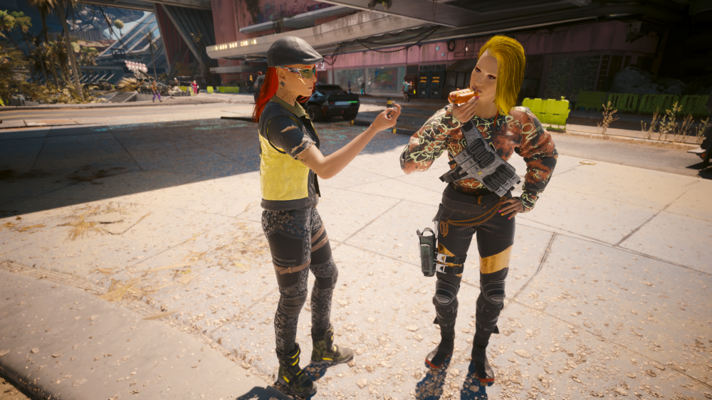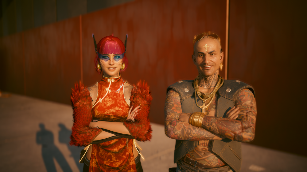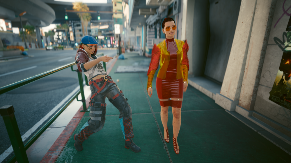I like having fun with the game's photo mode outside the game's main story line: NPCs and their lives, the city, funny or curious situations, typically with my V in the middle of them.