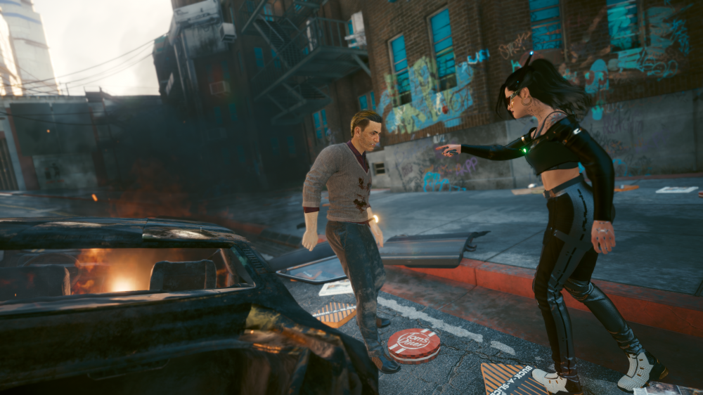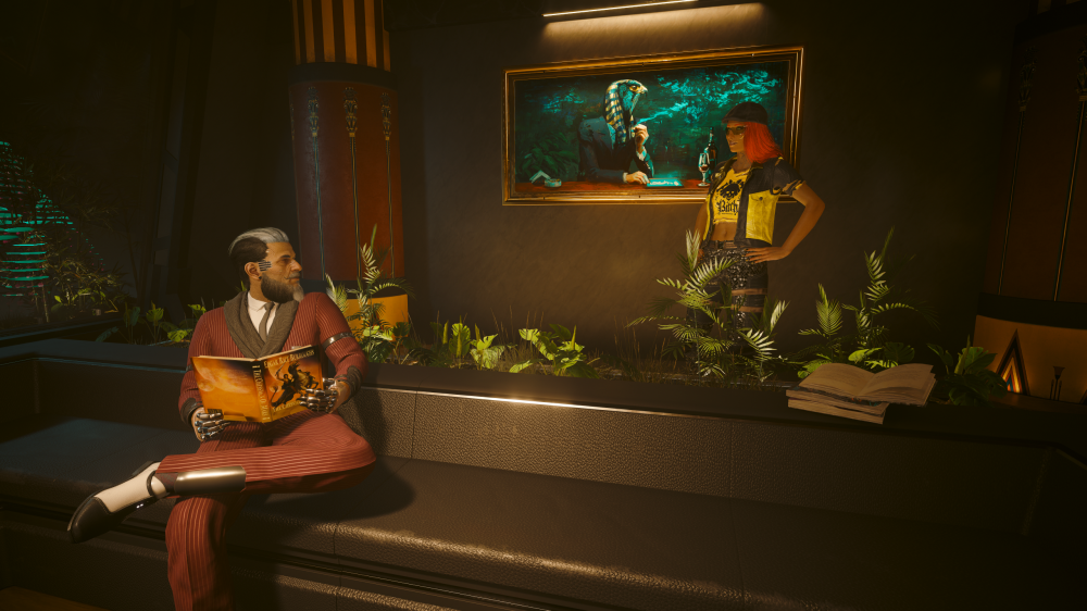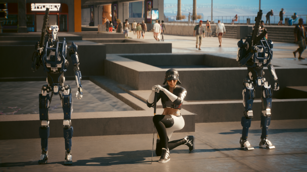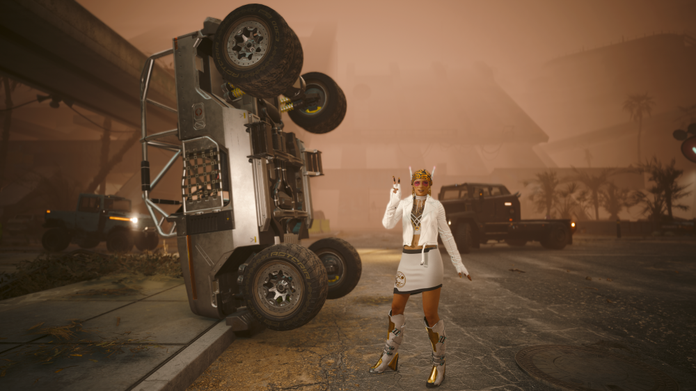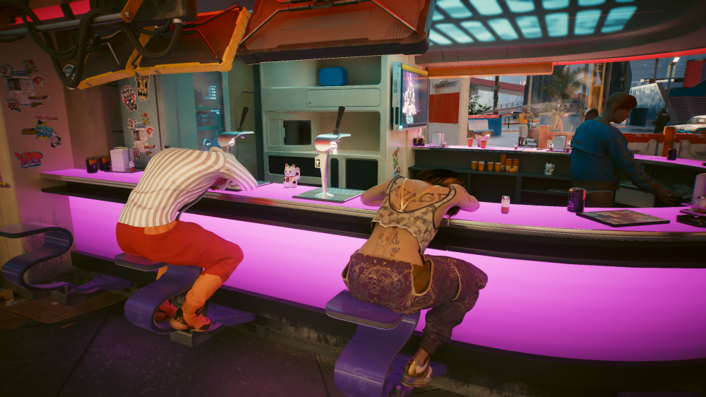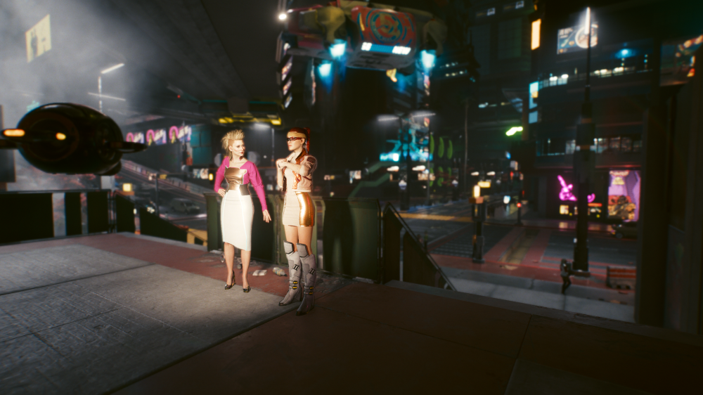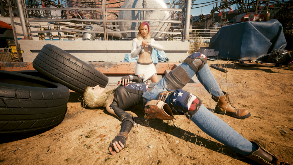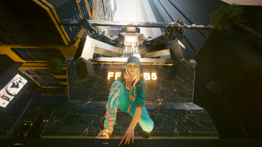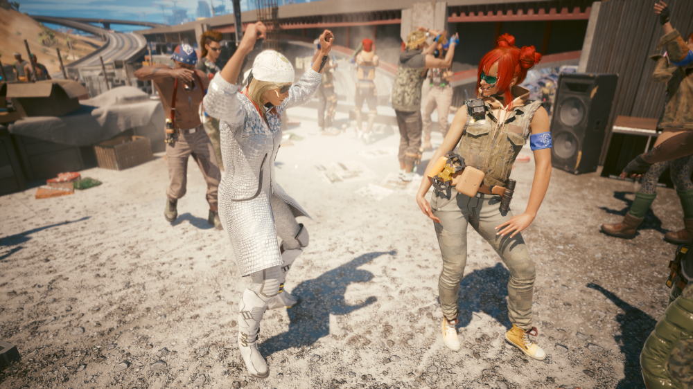 I like having fun with the game's photo mode outside the game's main story line: NPCs and their lives, the city, funny or curious situations, typically with my V in the middle of them.