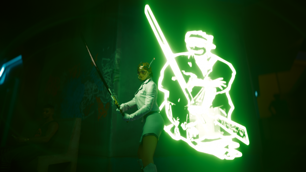 If you noticed the green glow around the pants, that only happens in photo mode with this specific color variant. In some cases, like here, it can look cool :D