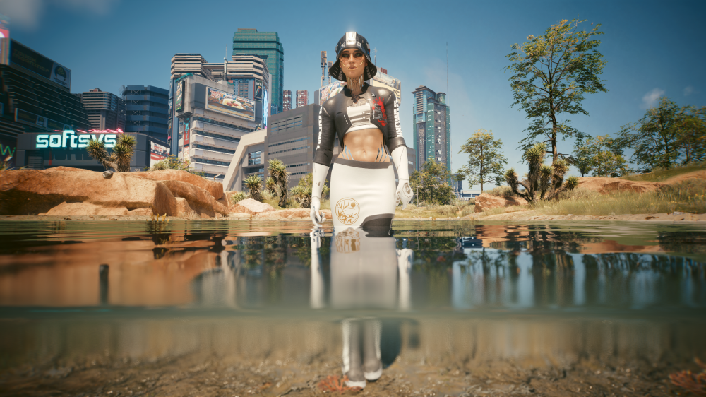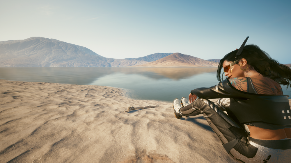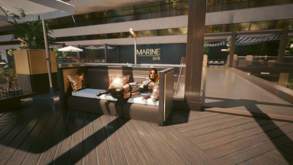 This looks awkward. It is doubly so if you take the bloodbath into account that's hidden off screen after the gig I just completed. It's quite wild to see that such mayhem can be so easily transformed into such a tranquil scene. Okay, the pose definitely looks forced though.