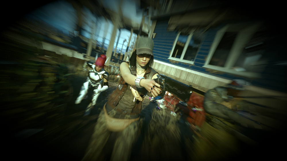 Without really intending to, I hit photo mode just when my combat accelerator kicked in. The speed effect really looks as if my character's racing to keep the 666th Street wooman from shooting.
