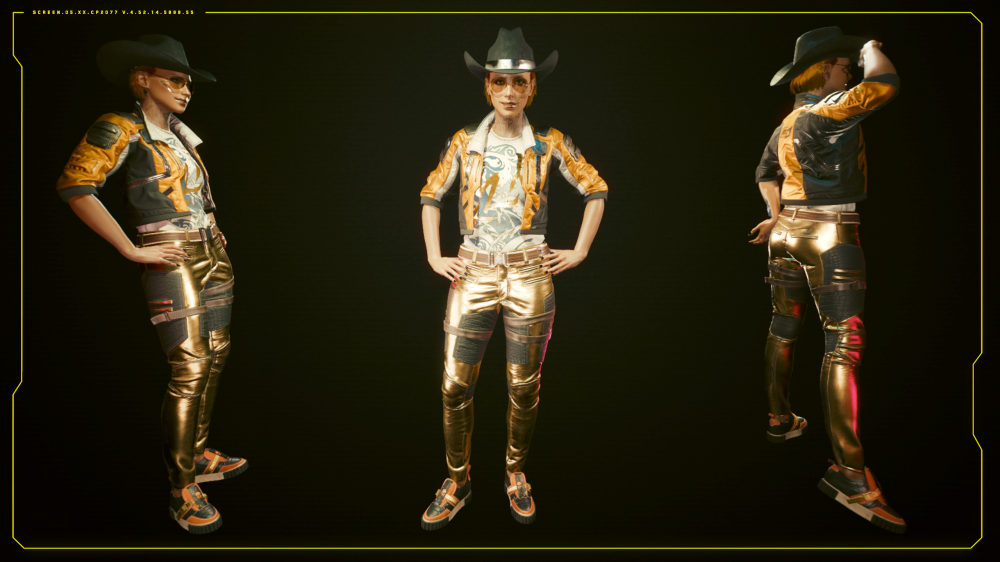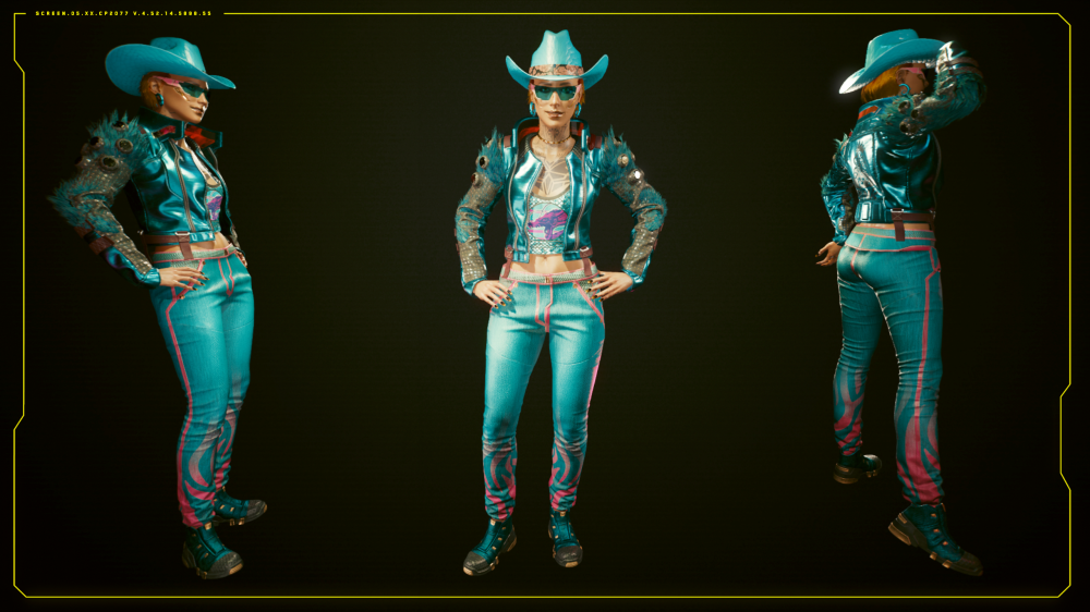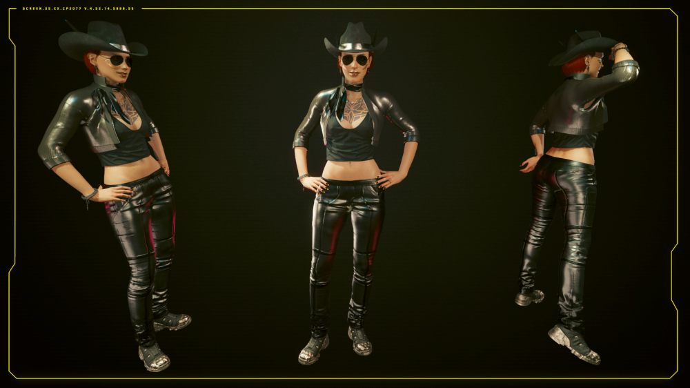 A darker, leather cousin of the Western Gal outfit, fit for the more somber alleys of Night City.