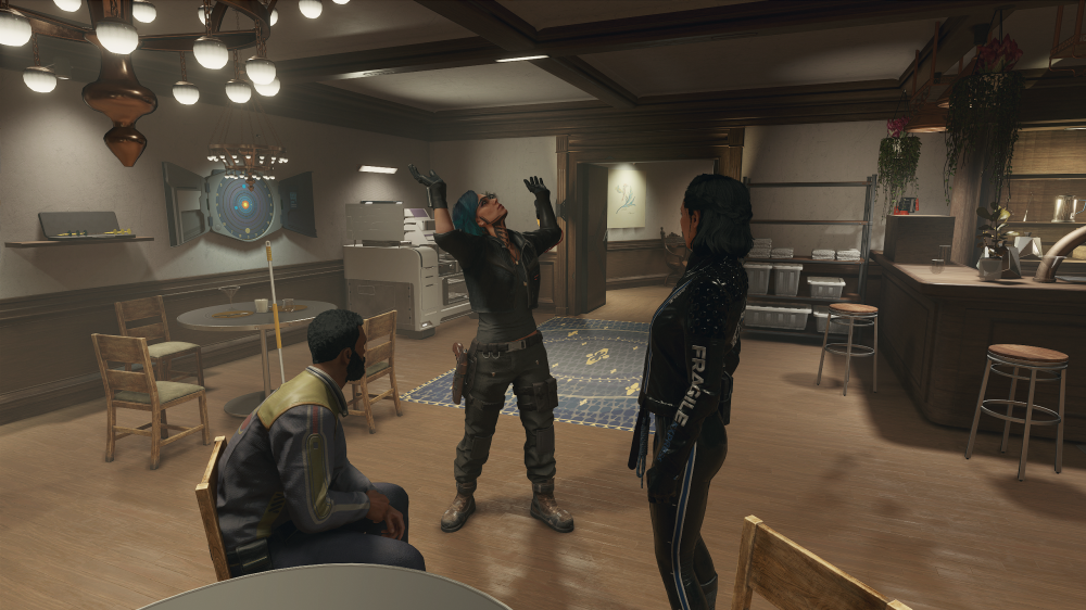 On Akila, the Rangers have a nice little bar with this side room that I have not seen anyone else in (so far?). It's really cosy, and a perfect place to relax between jobs :)